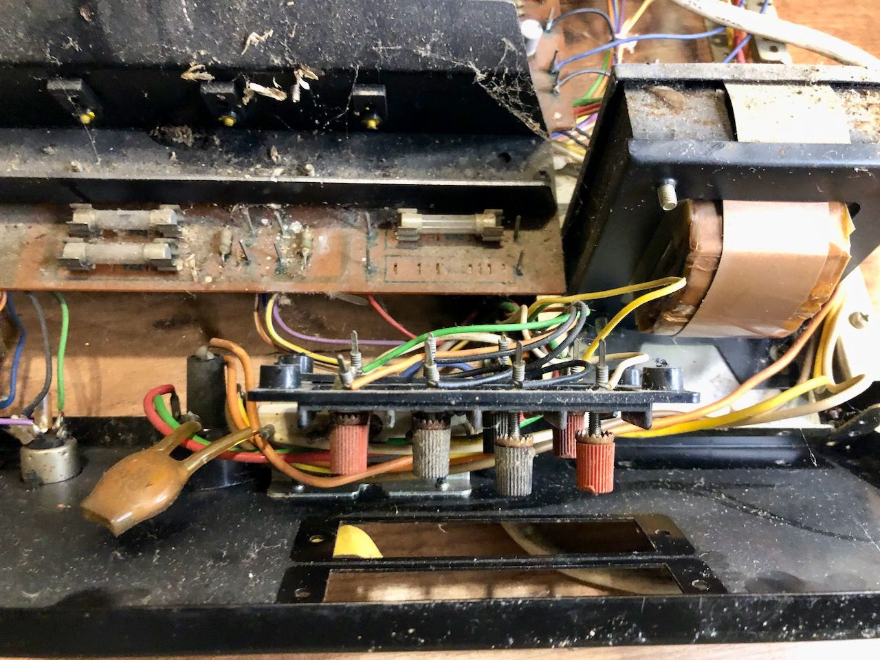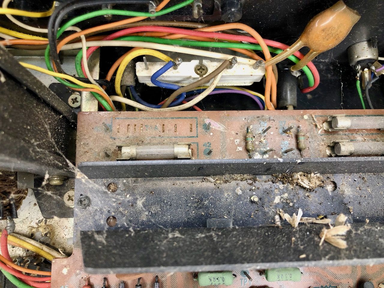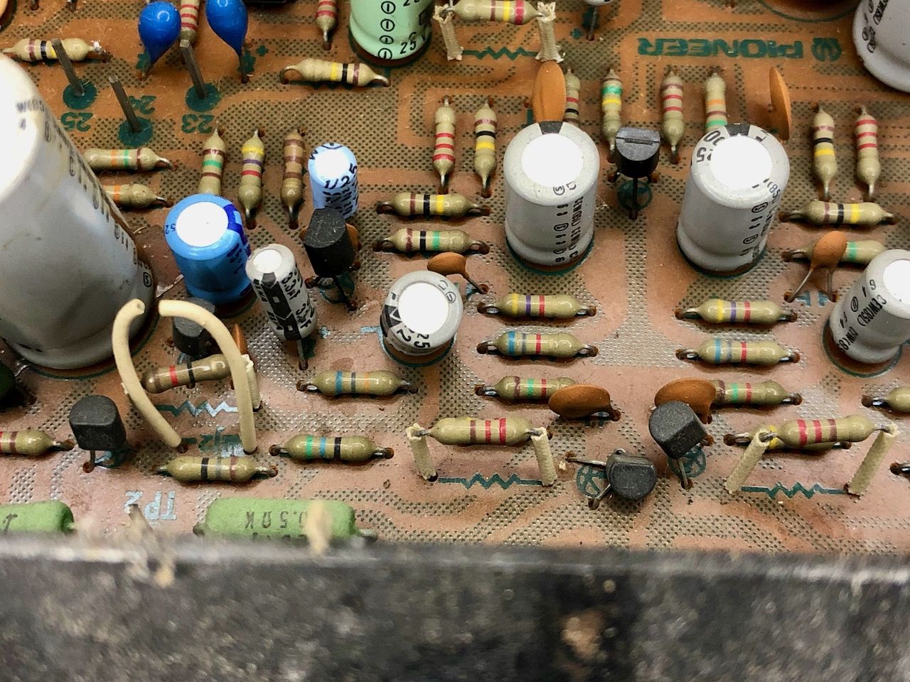 - Condensatoren doorgemeten. Gezien de leeftijd valt het niks tegen. De meeste zijn nog in prima conditie.