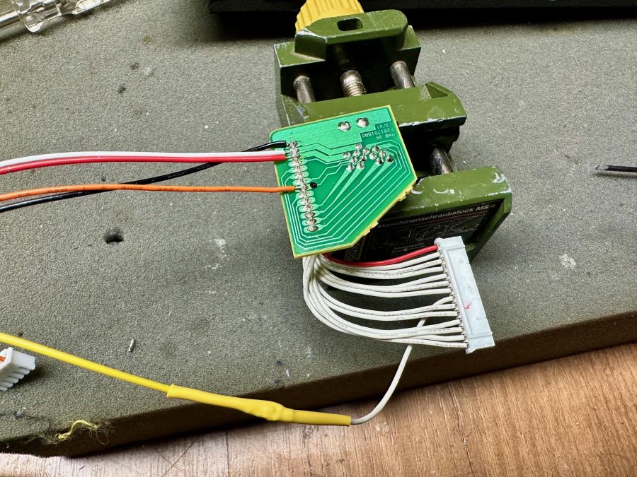 Soldeer nu de draden van de upgrade print op het GK3 board. Let op dat er geen kortsluiting ontstaat!