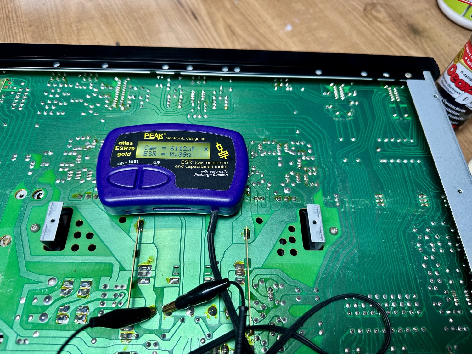 - De twee grote beker elco's meten met ruim 6000uF nog perfect.