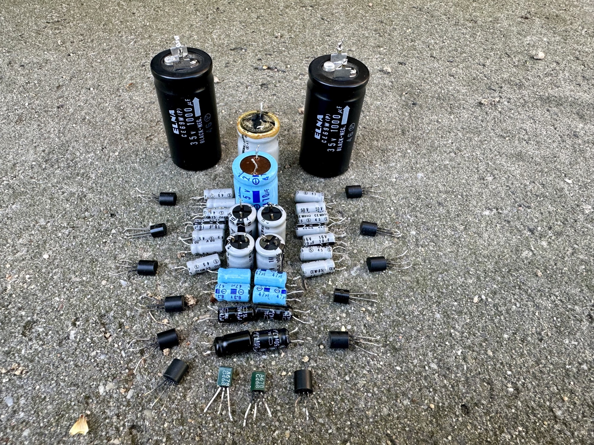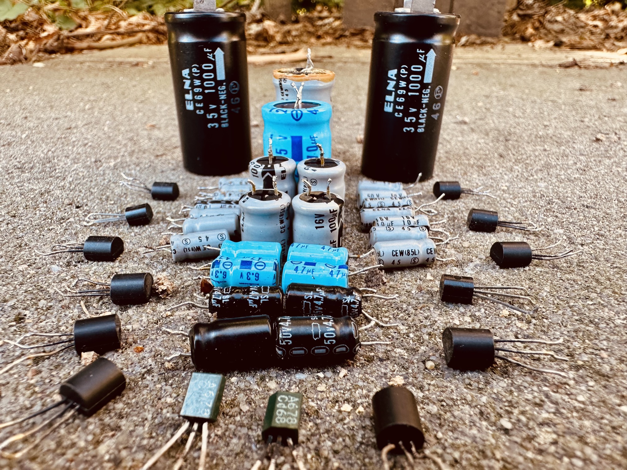 - Alle transistoren en condensatoren uitgeslodeerd en vervangen. Dit zowel van de phono versterker, de voorversterker en de eindversterker. Gebruikte types zijn: Wima, Panasonic FM, FR en FC.