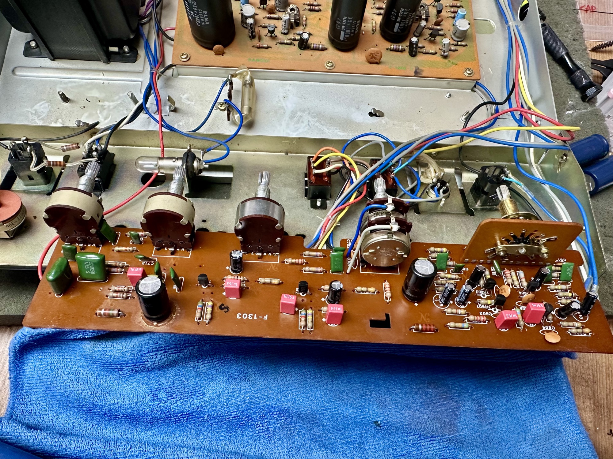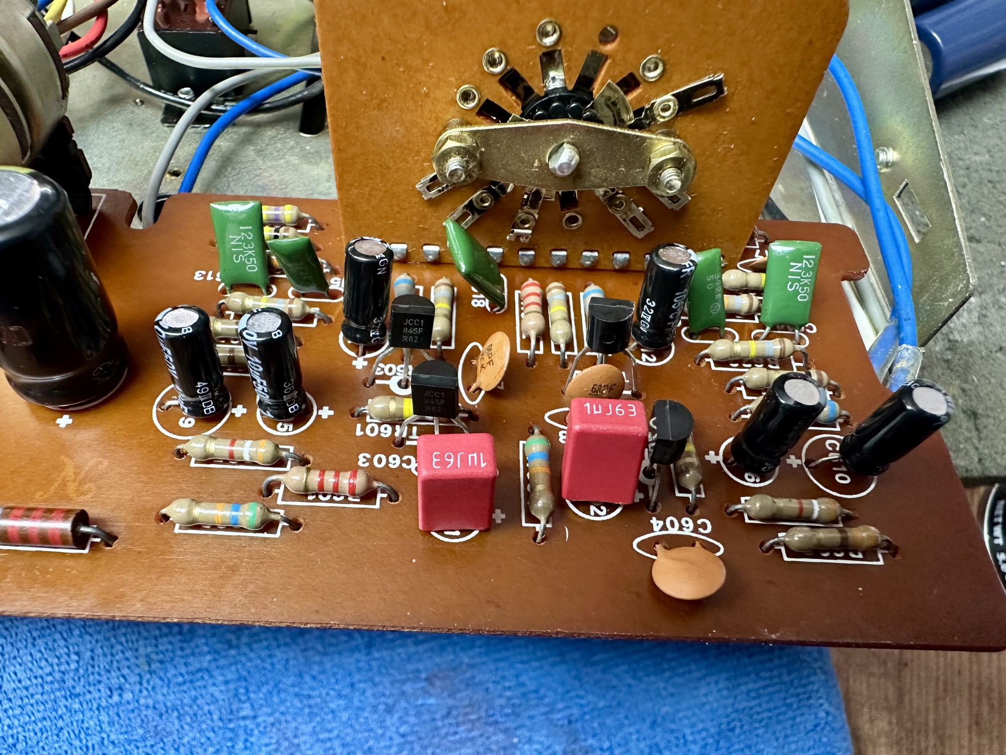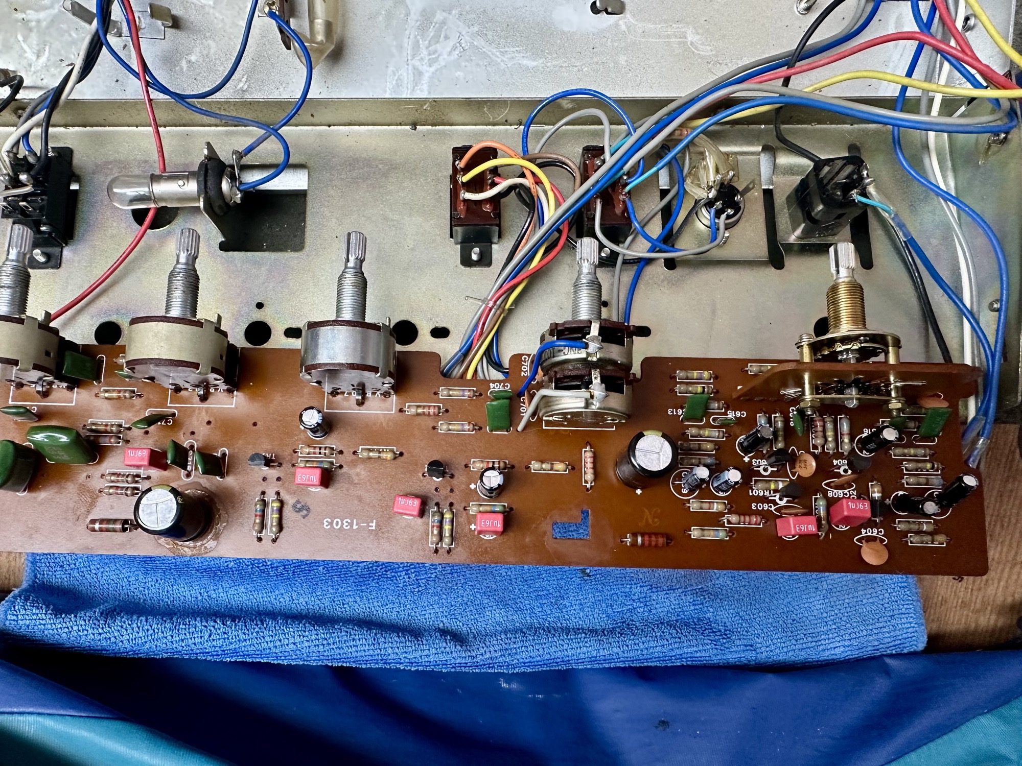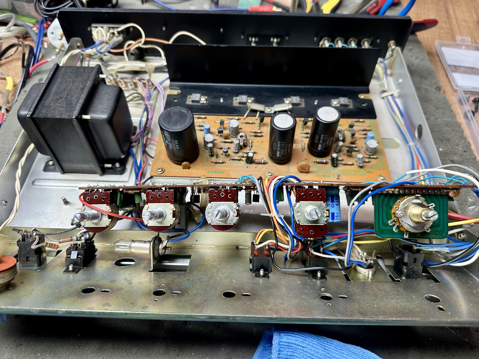 - Schakelaars en potmeters gereinigd en gesmeerd. Vooral de schakelaars hadden enorme overgangsweerstanden.