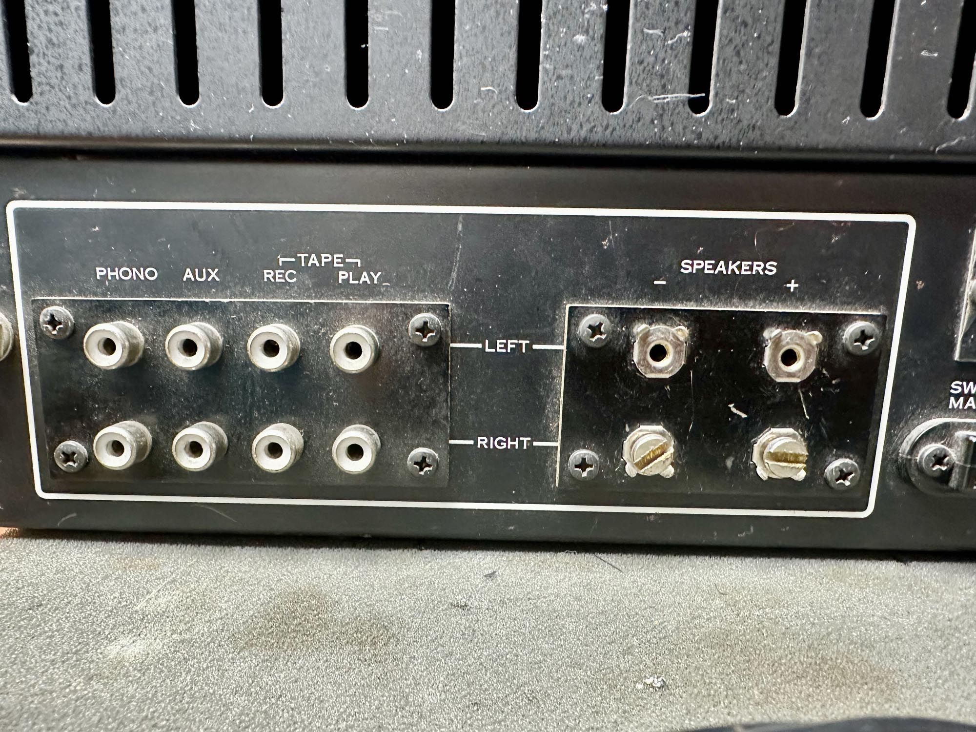 Deze versterker weegt bijna niks, heeft een uiterst kleine transformator, een eenvoudige voeding en vier simpele transistoren in de uitgang. Een bescheiden vermogen van zo’n 15 watt, slechts twee echte ingangen (Phono en AUX) en een gevaarlijke luidsprekeraansluiting. Wat kan je nu van zo’n oud dingetje verwachten?