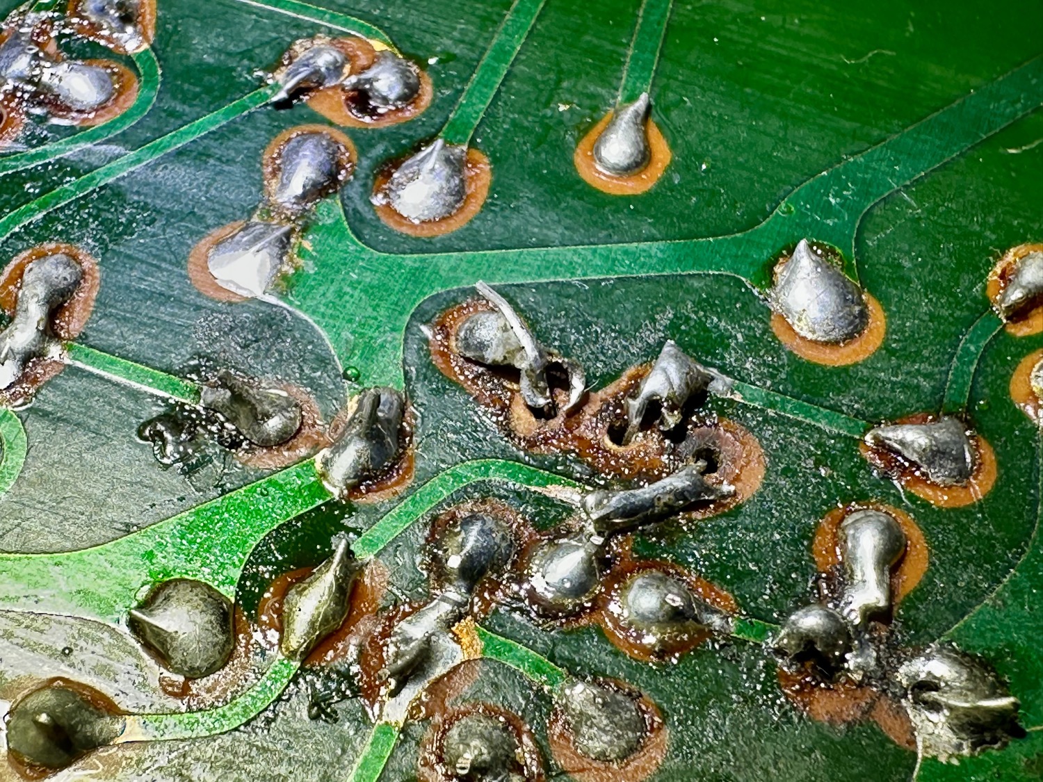 - Veel slechte soldeerverbindingen en beschadigde printbanen.