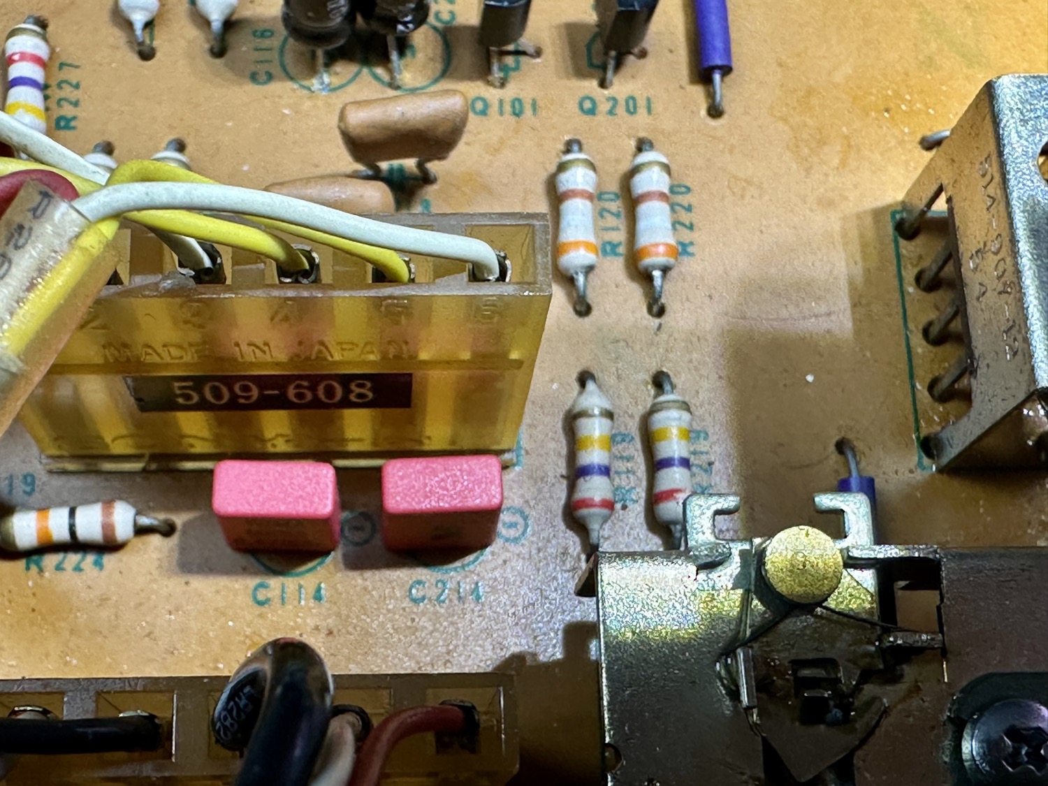 - De transistoren Q101, 102 en 103 (2x) type 2SC632 staan bekend om hun ruis. Deze vervangen door gematchte 2SC1845.