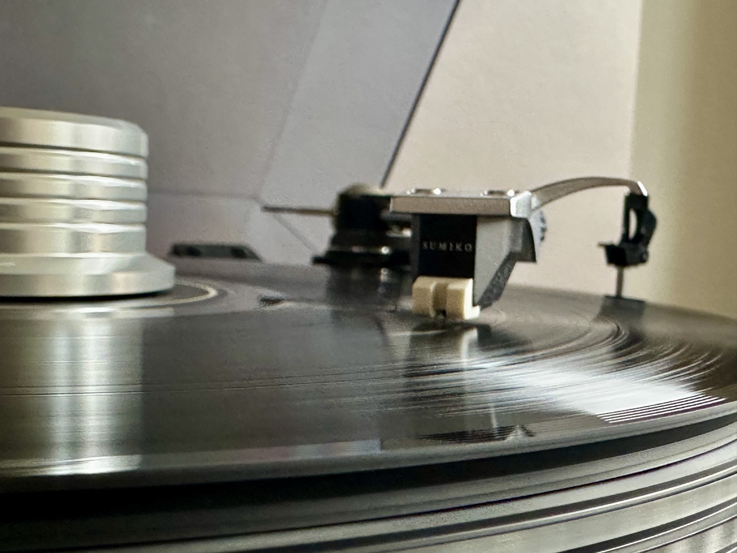 Een mooie LP van The Alan Parsons Project - The turn of a friendly card - gaat op de Onkyo. Even wat stof eraf en de naald naar het begin verplaatsen. De armlifter naar beneden en het volume van de versterker wat omhoog schuiven. Is zo'n dubbele volume nu handig of juist lastig? Laten we het op "even wennen" houden.