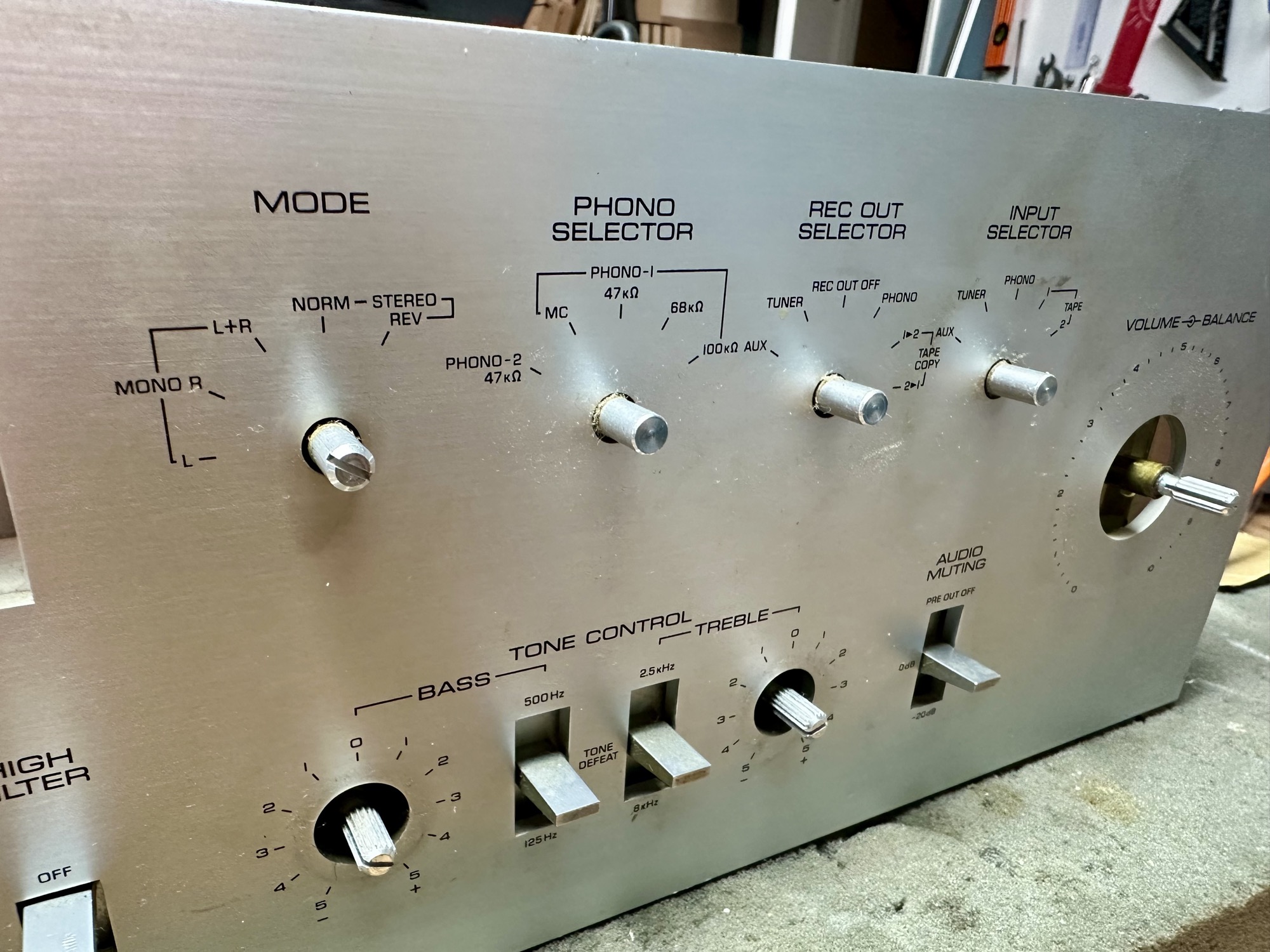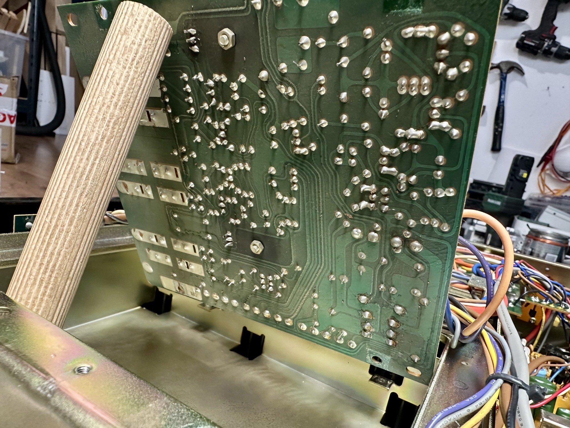 - Power aan/uit led voorzien van 1,4K ohm weerstand voor een stroom van +/- 9mA. - Schakelaars en potmeters gereinigd met Deoxit en versterker afgeregeld voor zowel Class A als Class AB.