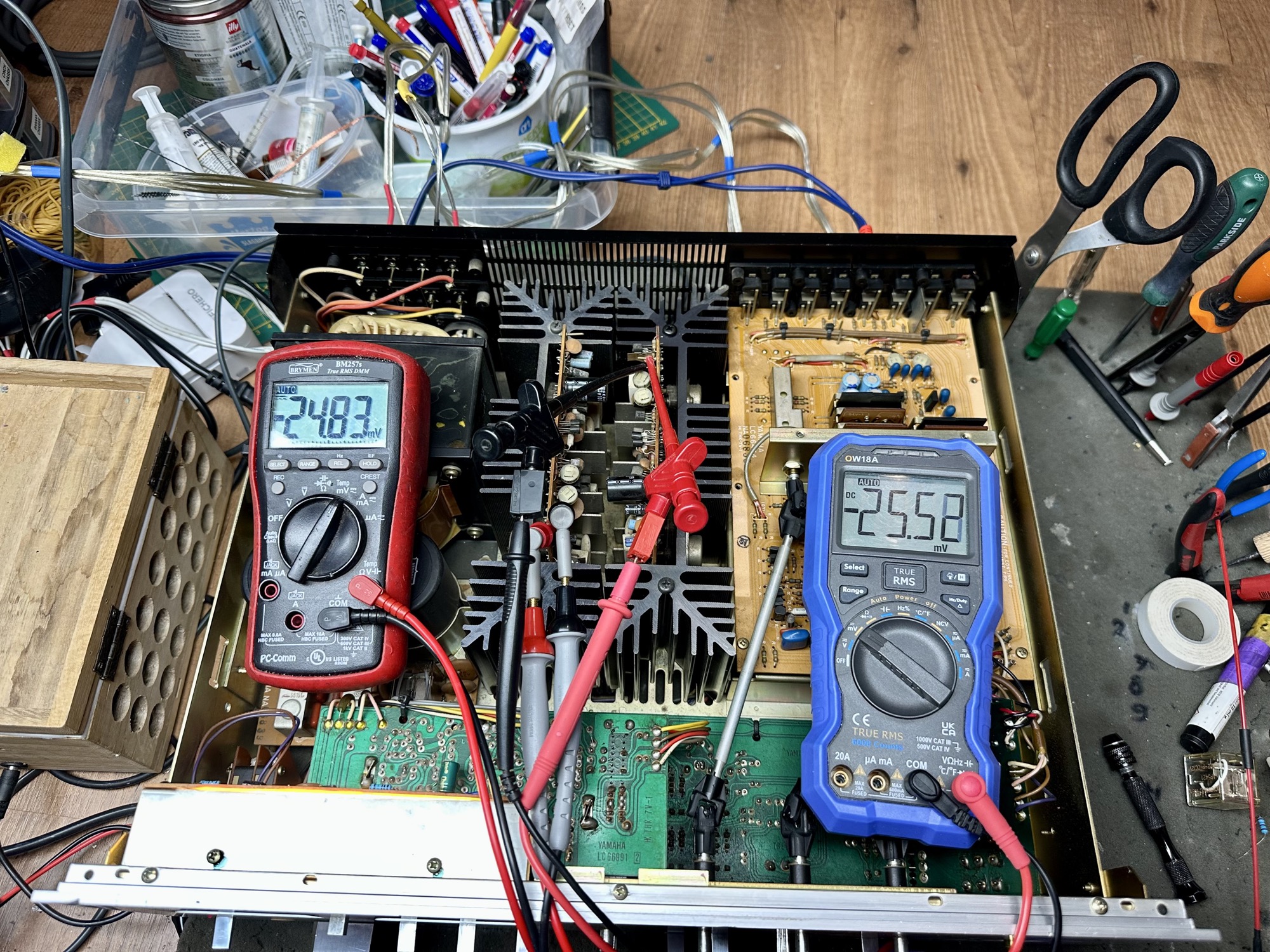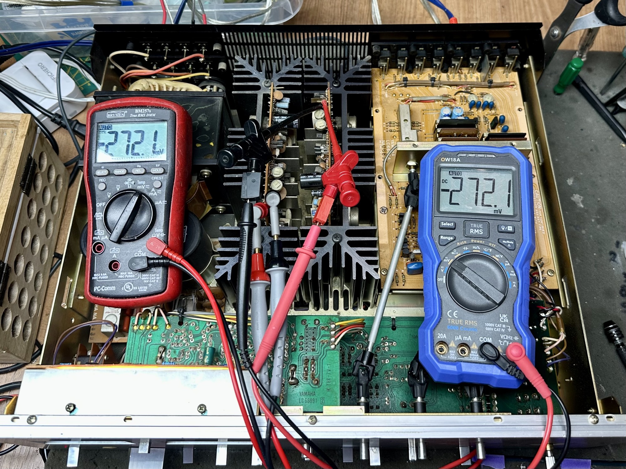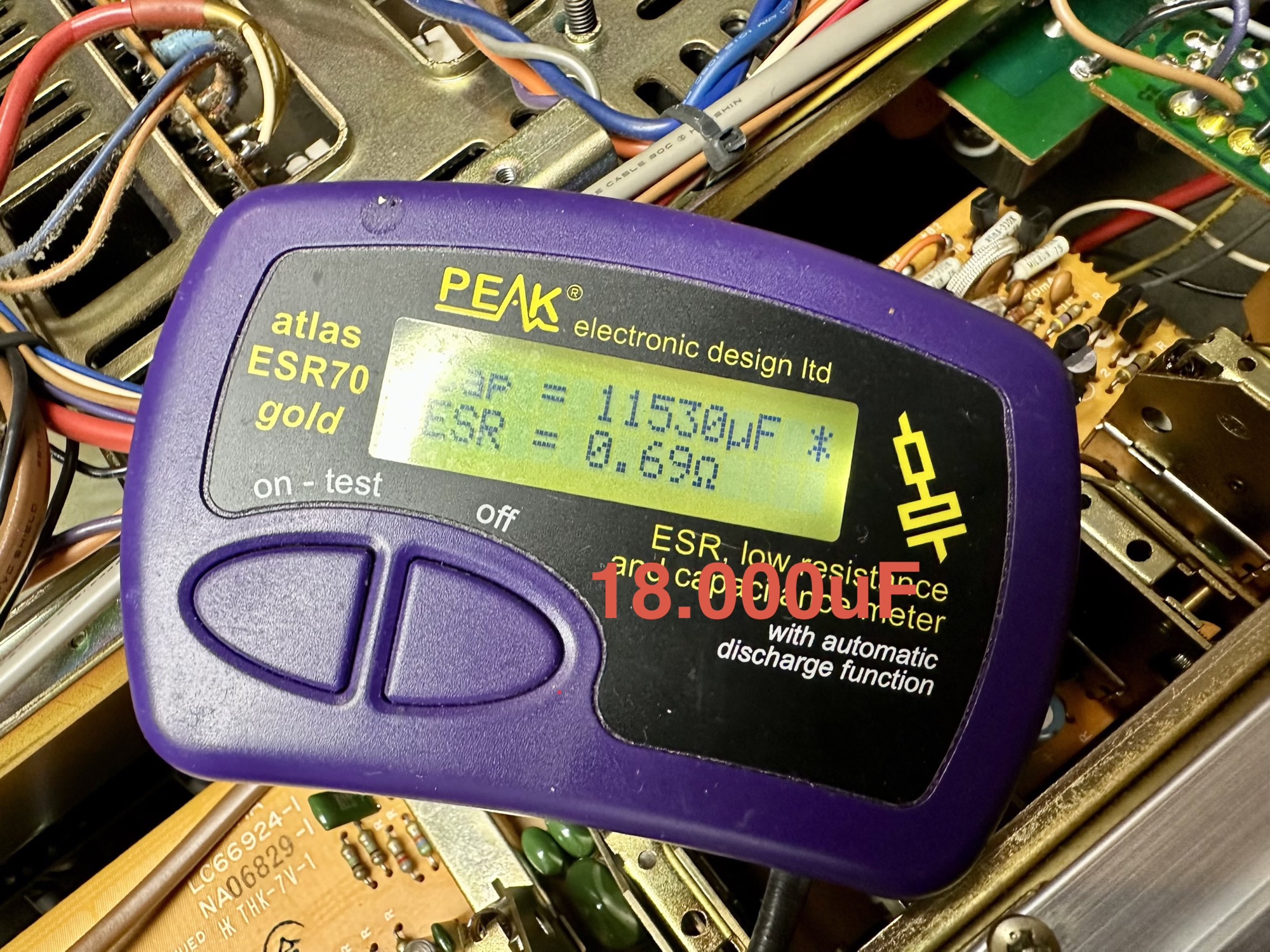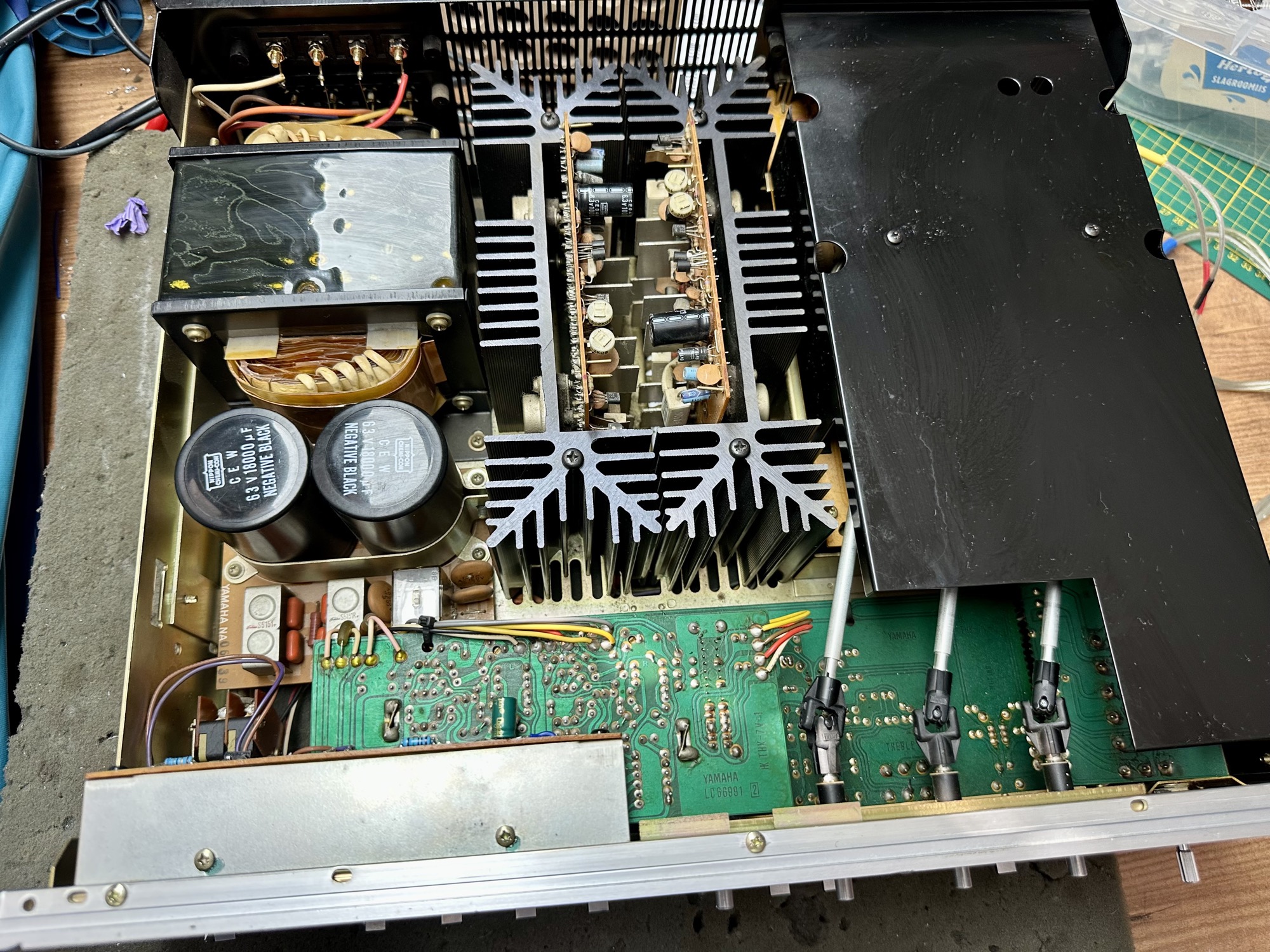 - 18.000uF elco's hebben een capaciteit van +/- 11.500uF en zijn dus in de jaren wat kwijtgeraakt.