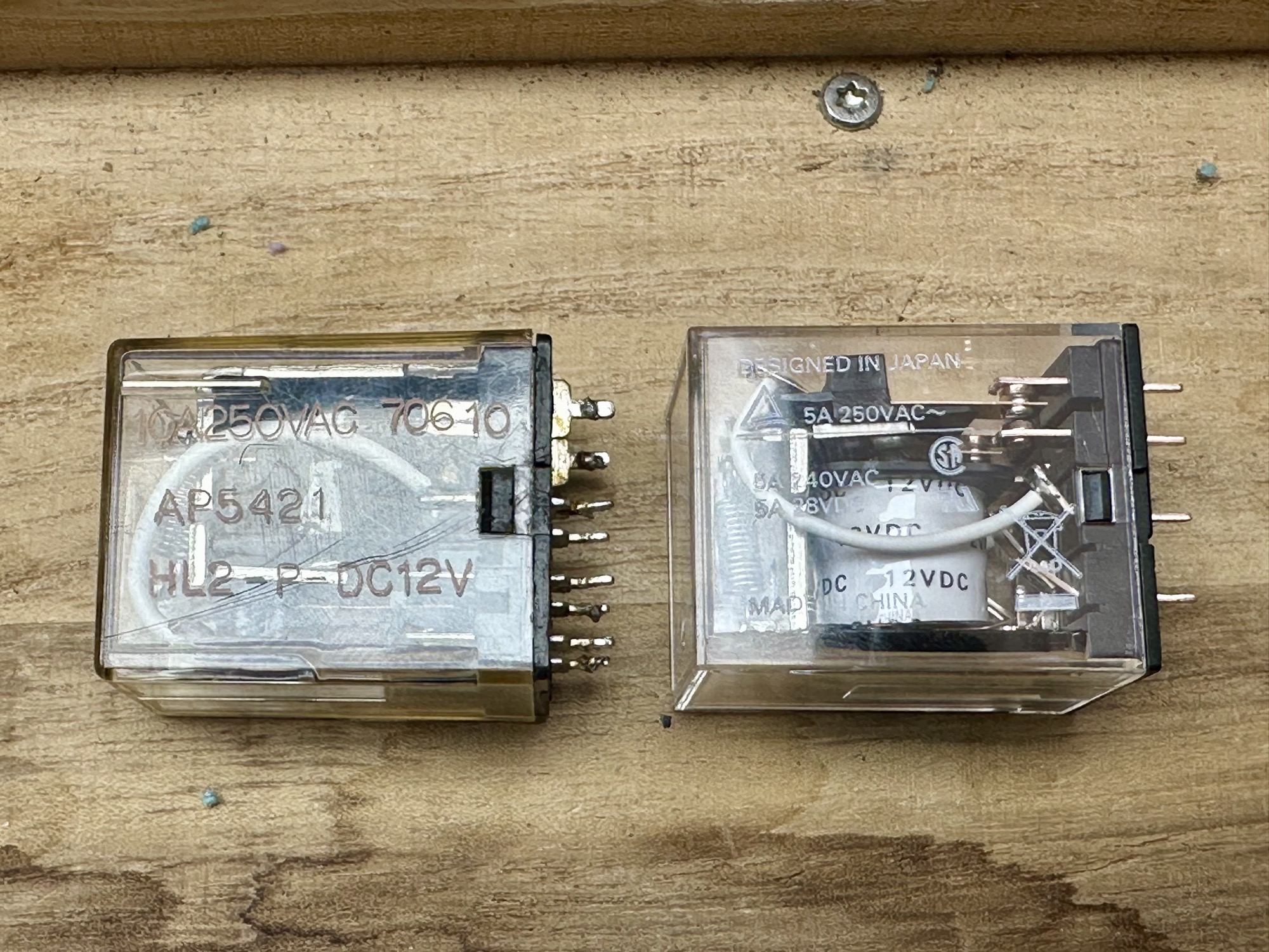 - Relais vervangen door alternatief MY2-02-DC12 vervangen. Helaas is de pin lay-out niet 100% gelijk en moet de printplaat wat worden aangepast.