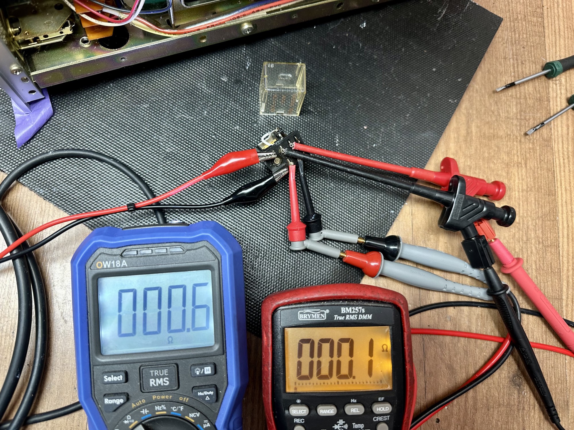 - Relais uitgesoldeerd en gemeten. Met één hele hoge overgangsweerstand is dit één van de oorzaken van het uitgevallen kanaal.