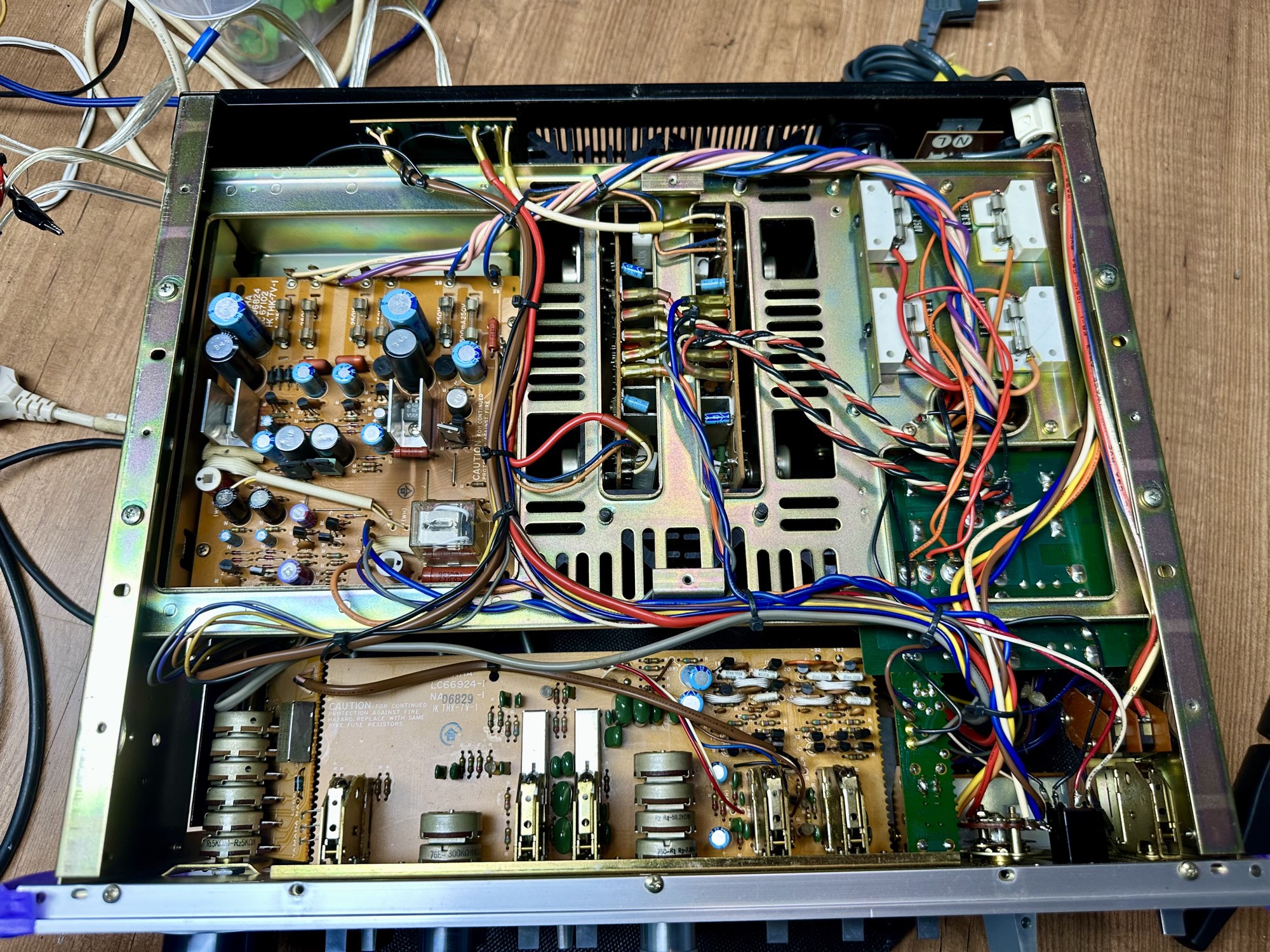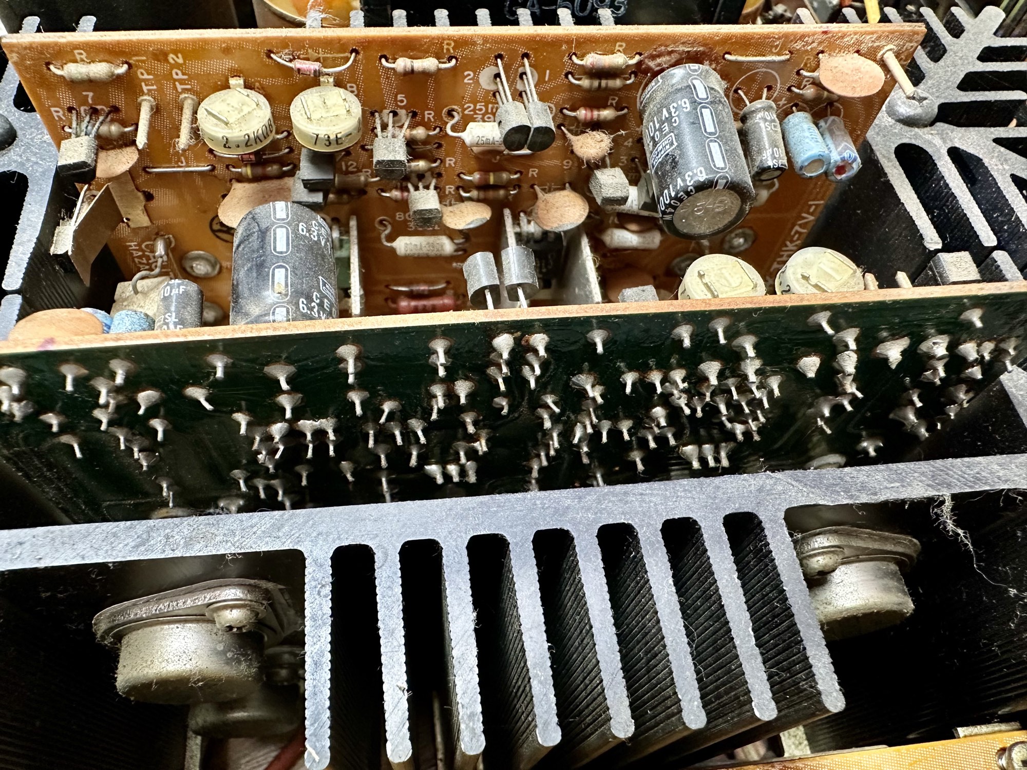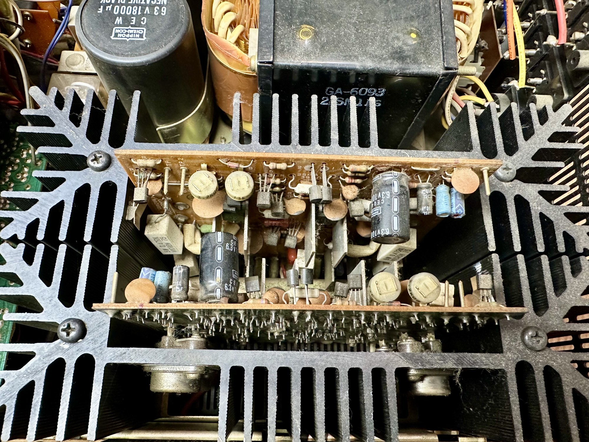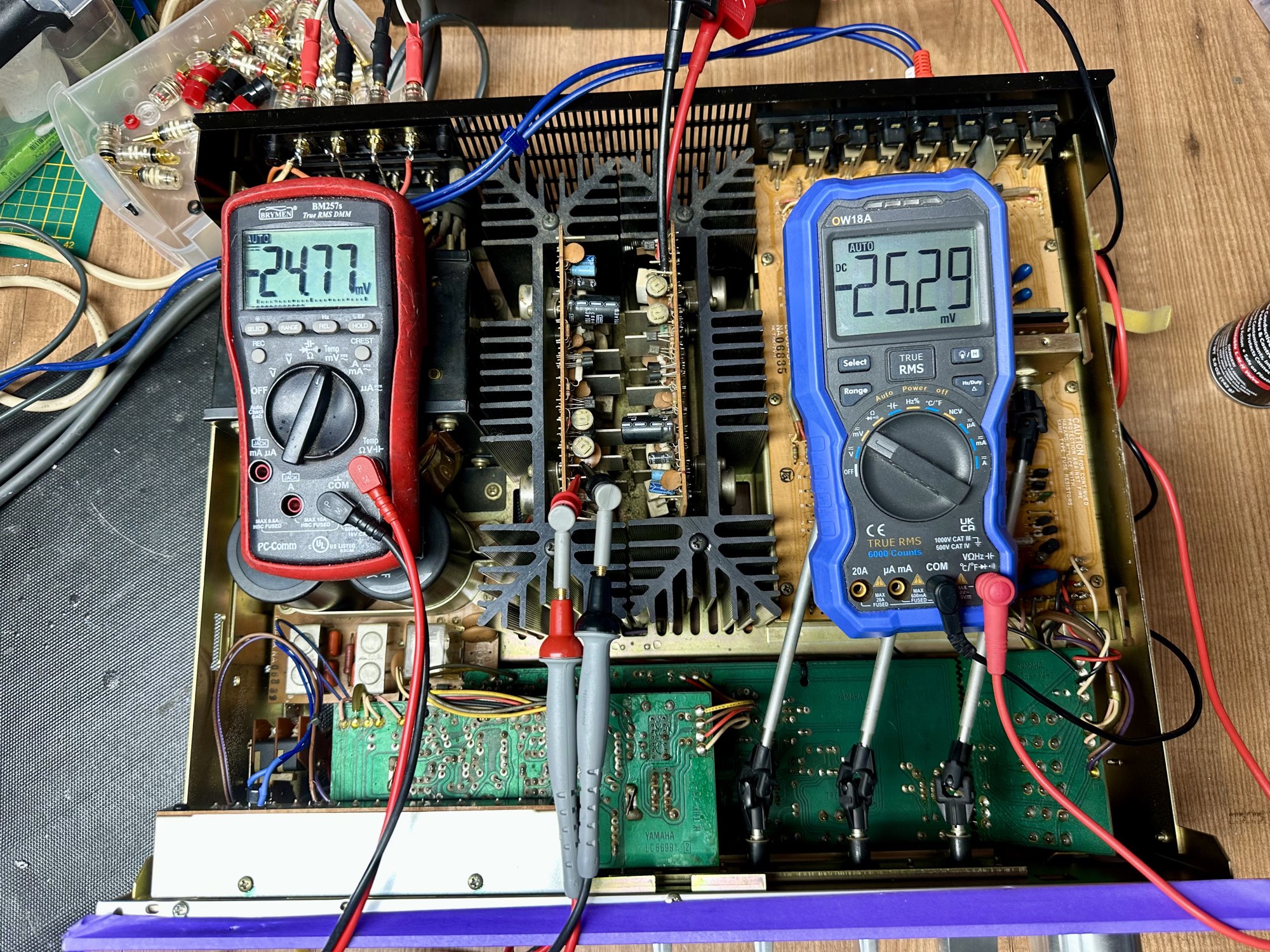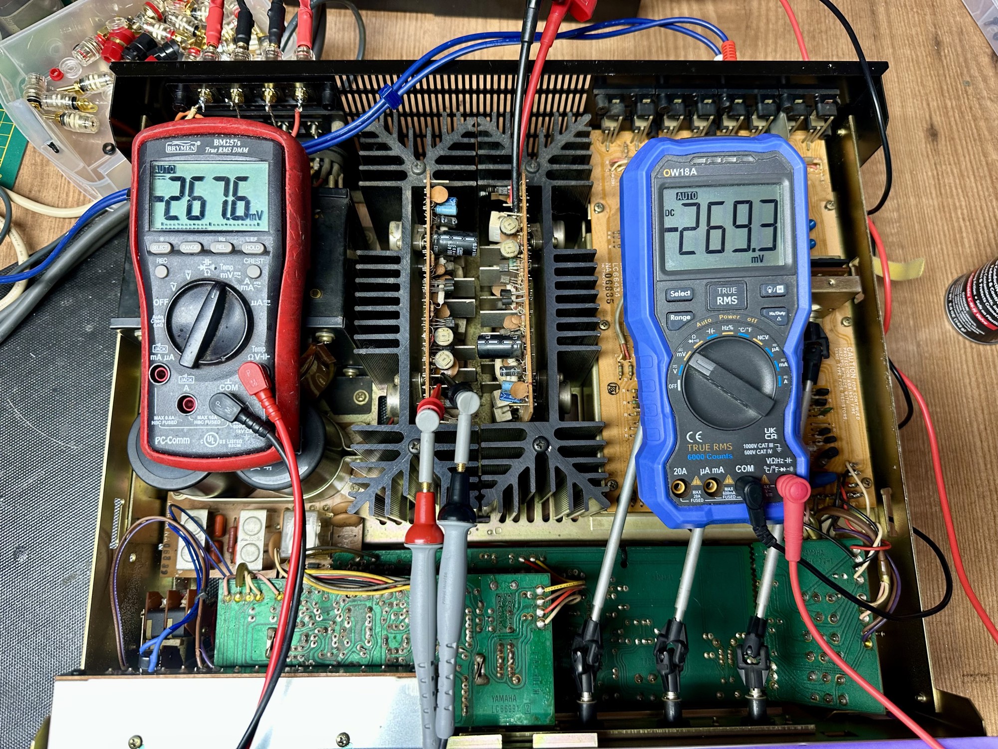 - De twee 18.000uF voedingscondensatoren zijn wel wat waarde kwijtgeraakt maar hebben nog steeds een keurige 13.000uF capaciteit.