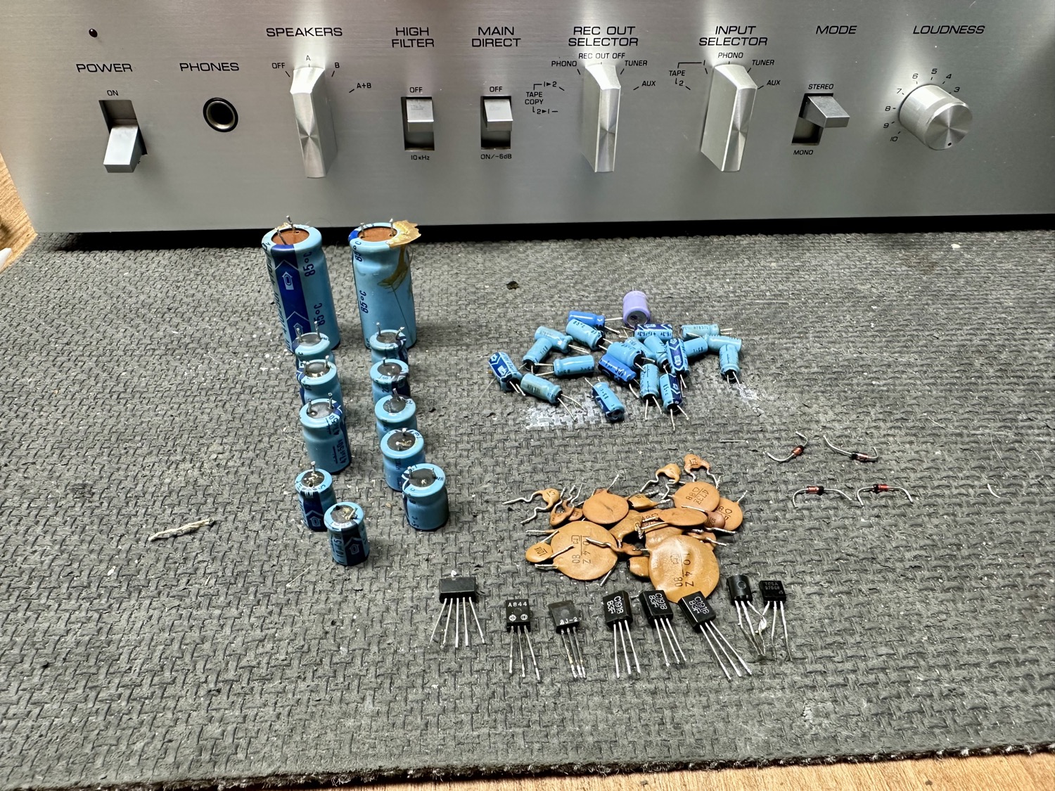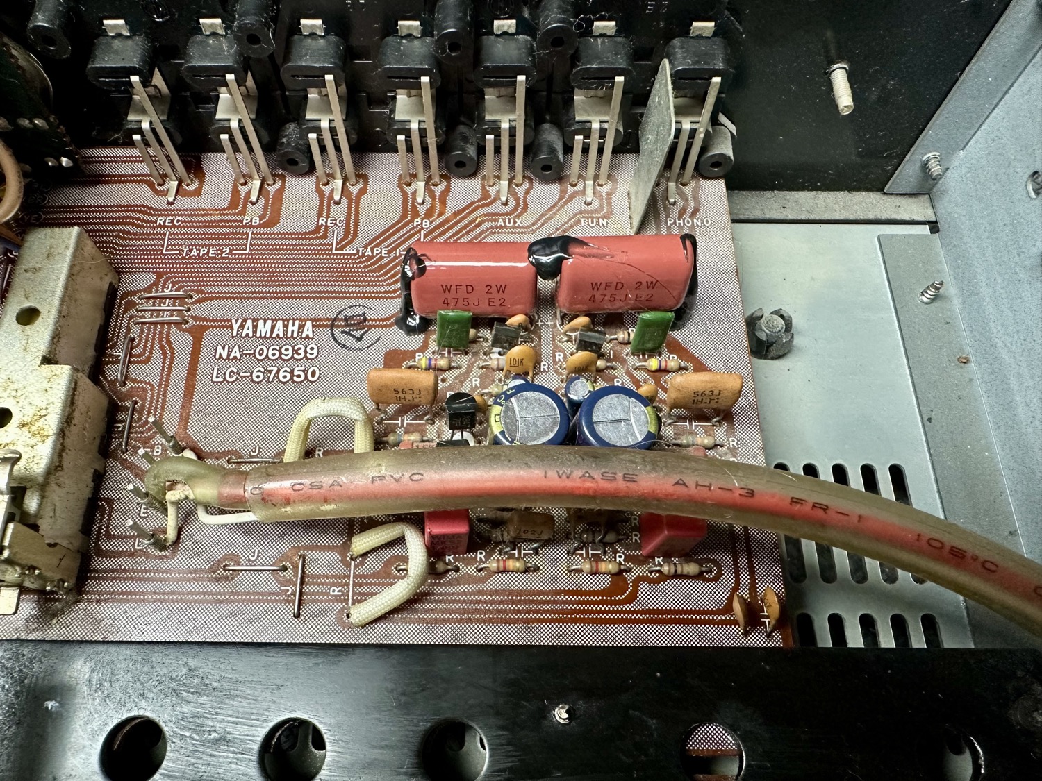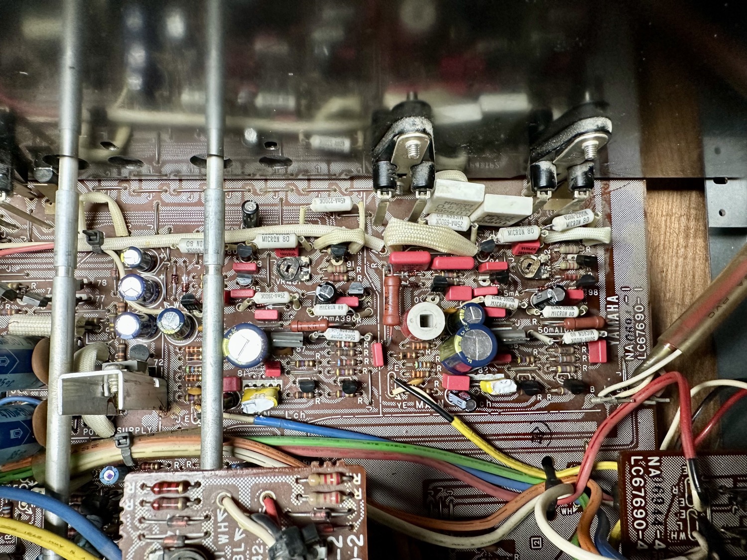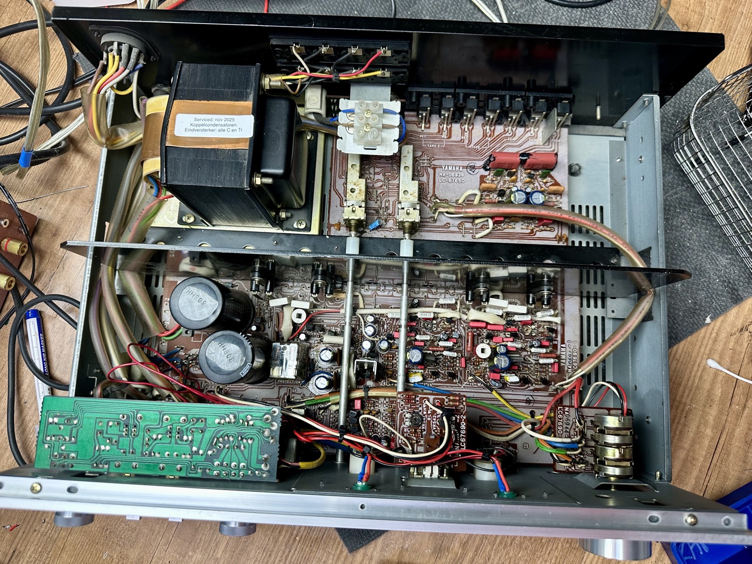 - Afsluitend alle condensatoren van de phono trap en voorversterker vervangen. De versterker afgeregeld.