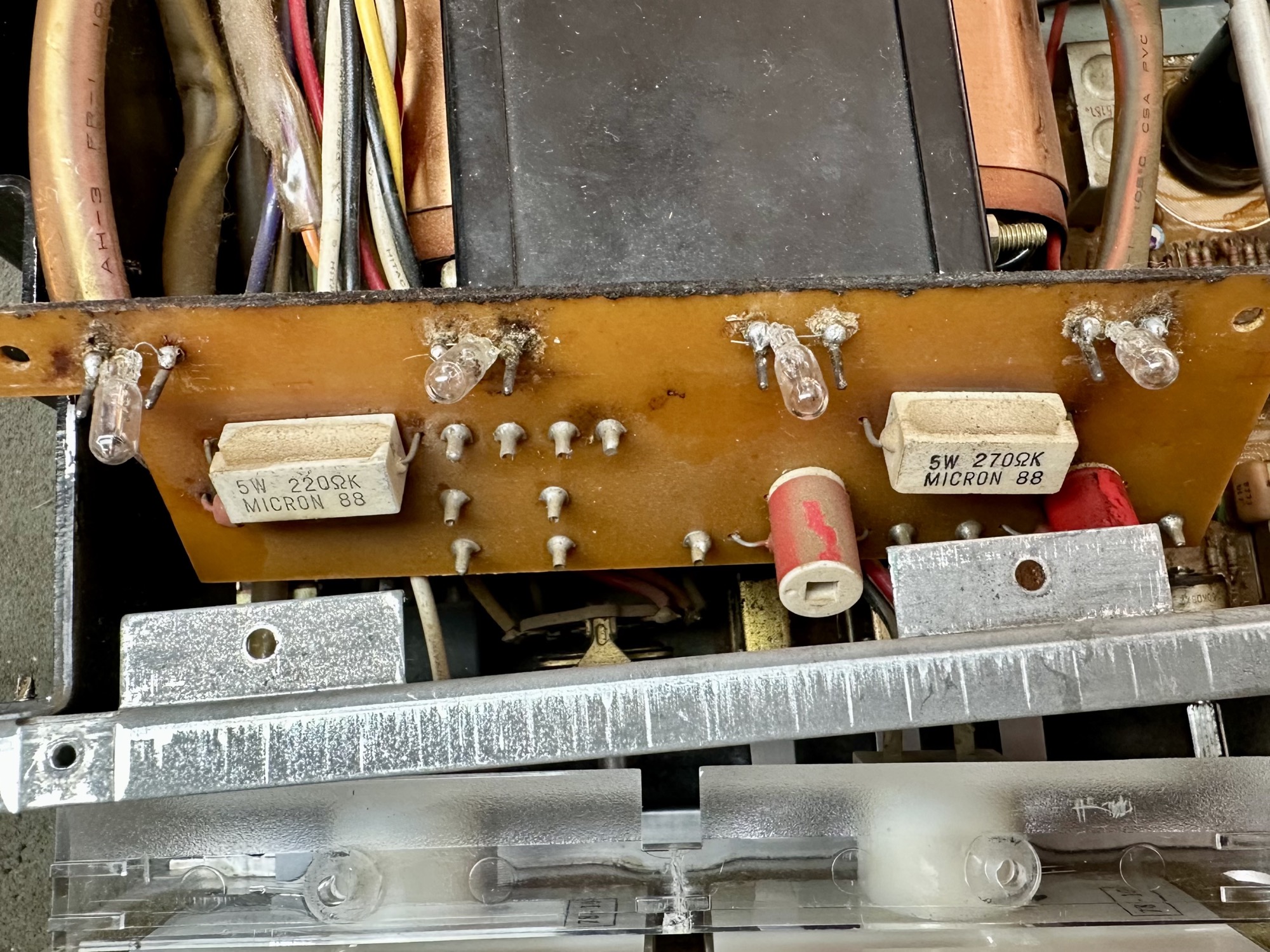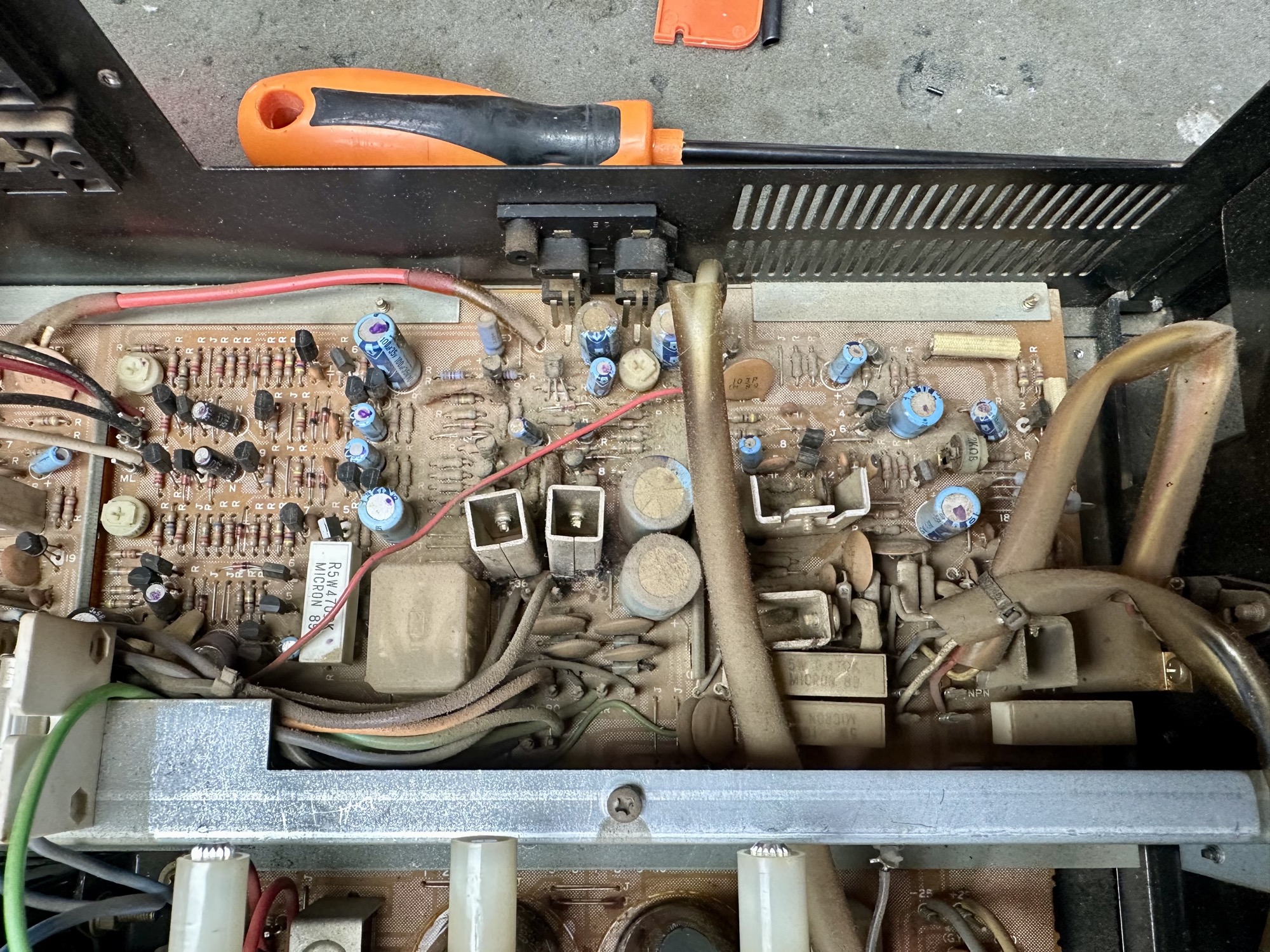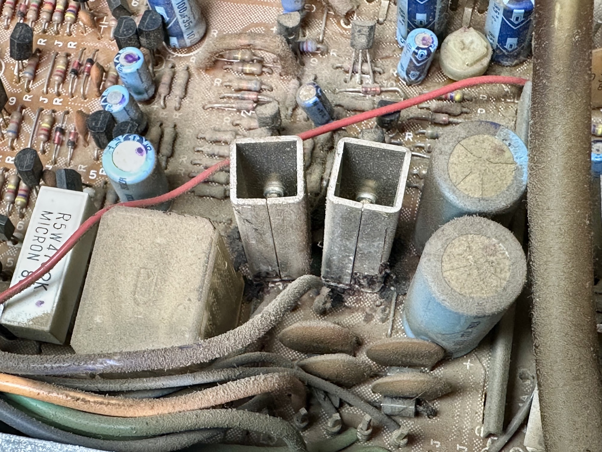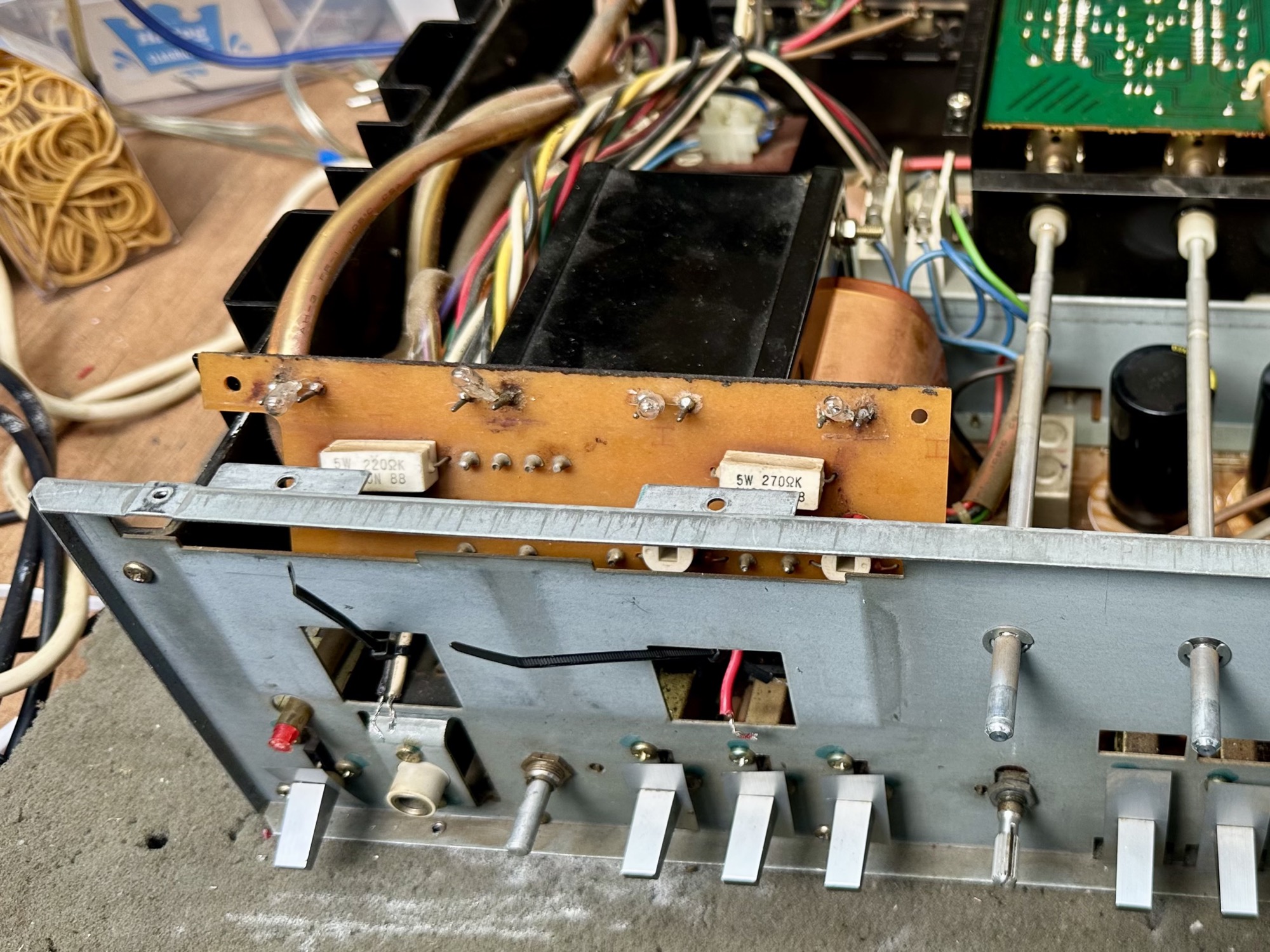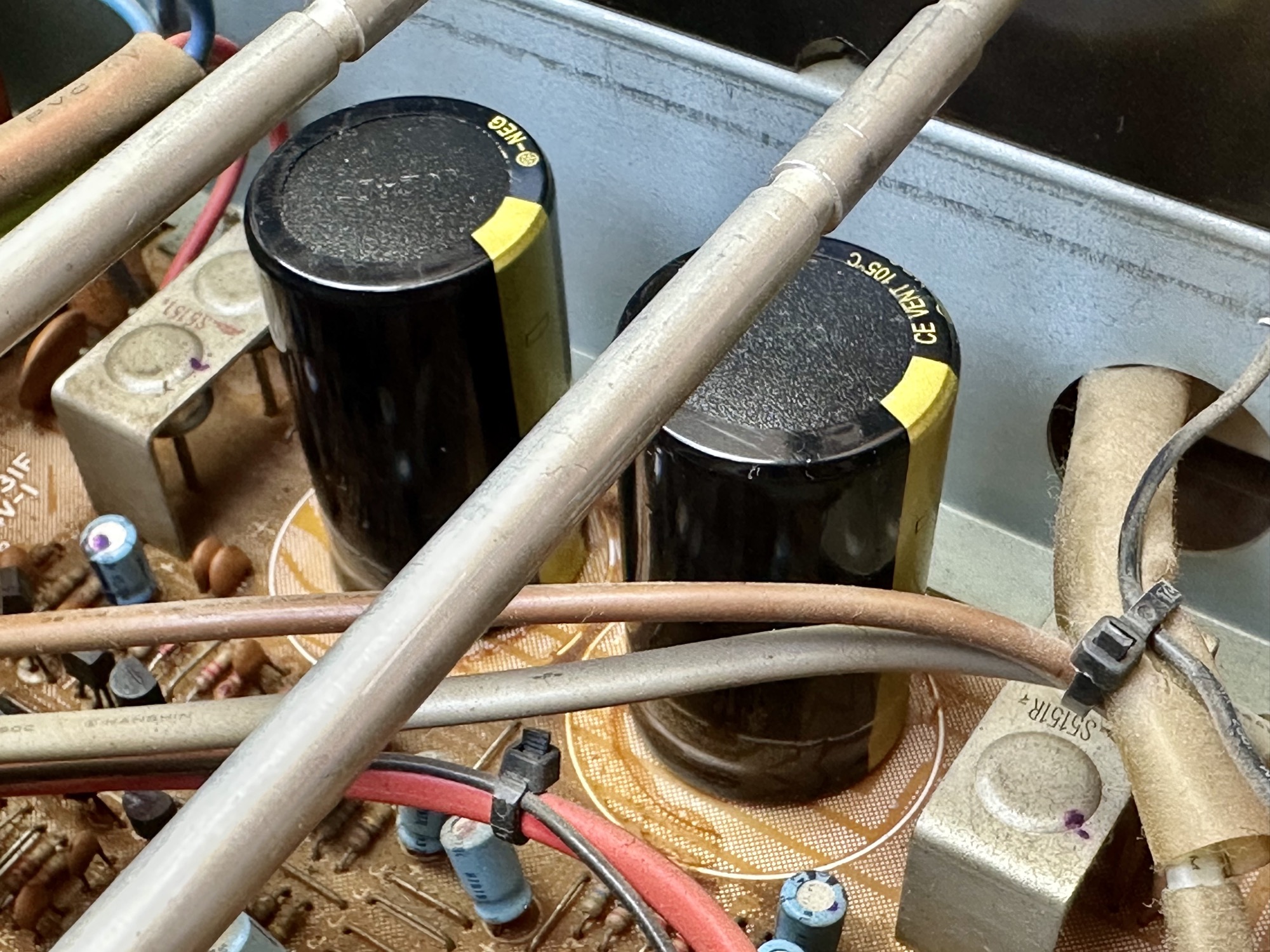 - De twee 12.000uF/58V Elco's zijn al eens vervangen door alternatieven. Kwaliteit onbekend. Capaciteit- en ESR meting is goed.