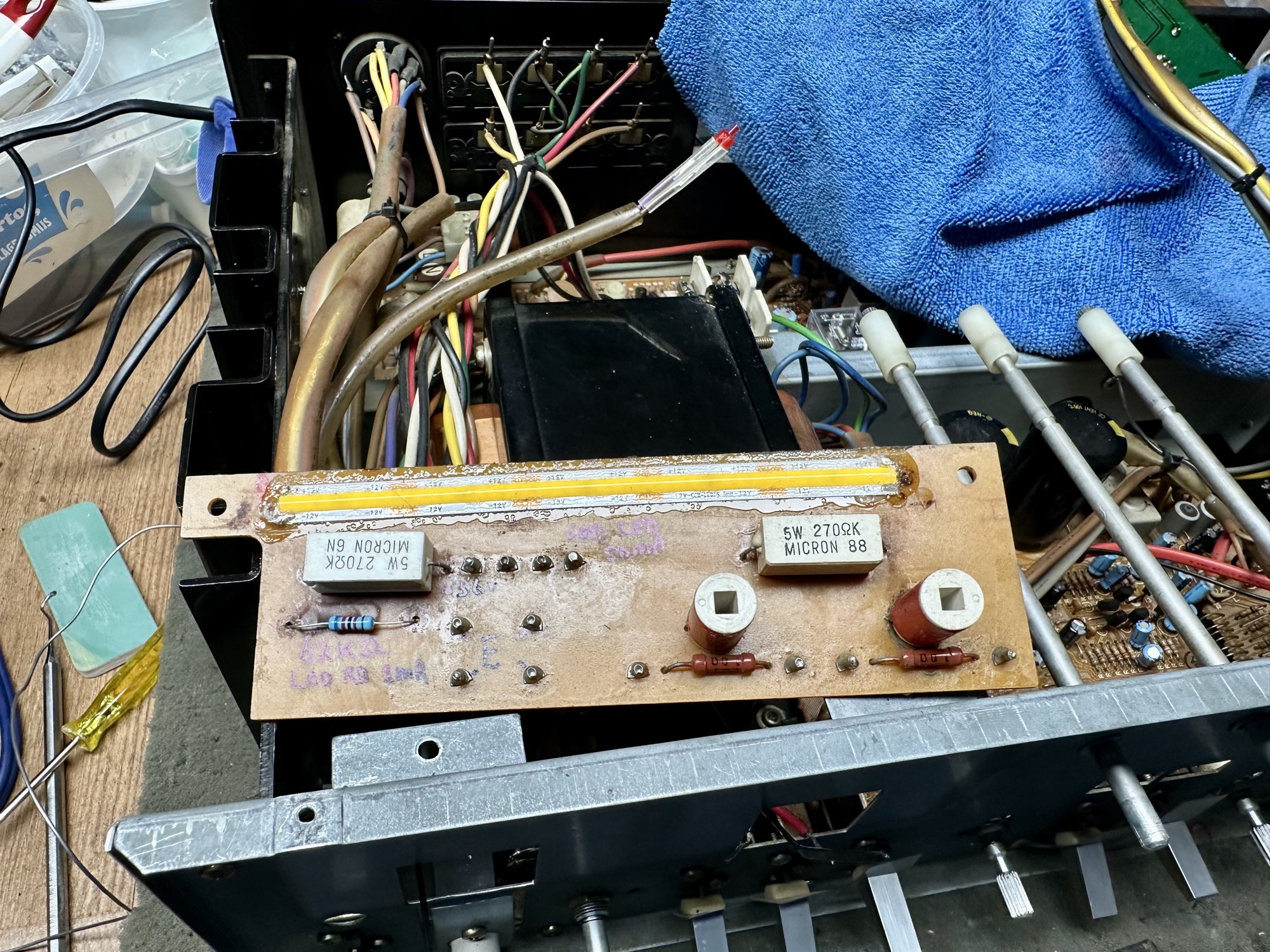 - VU meter verlichting aangepast naar COB led. 12V ledstrip voorzien van 50mA constante stroom.