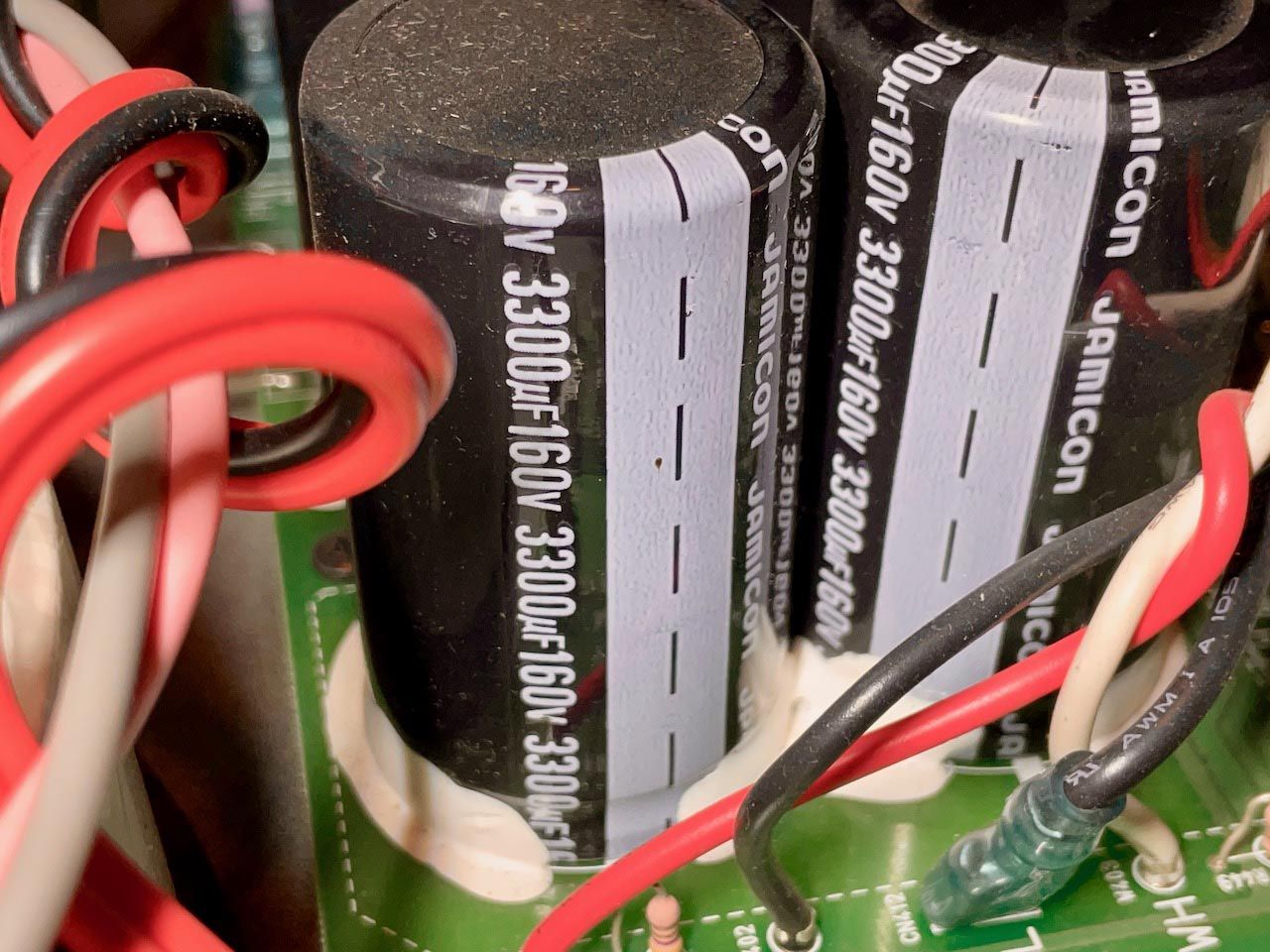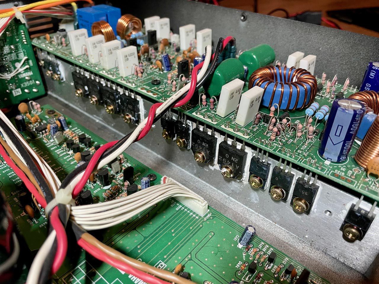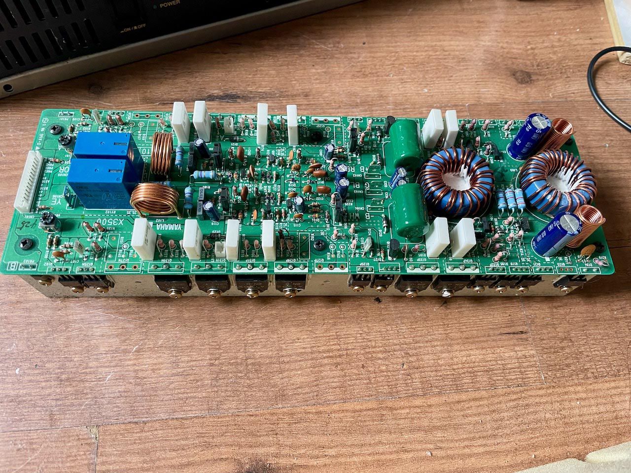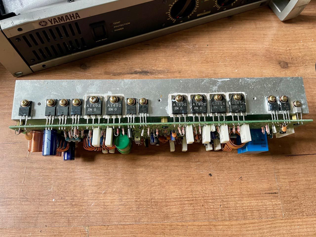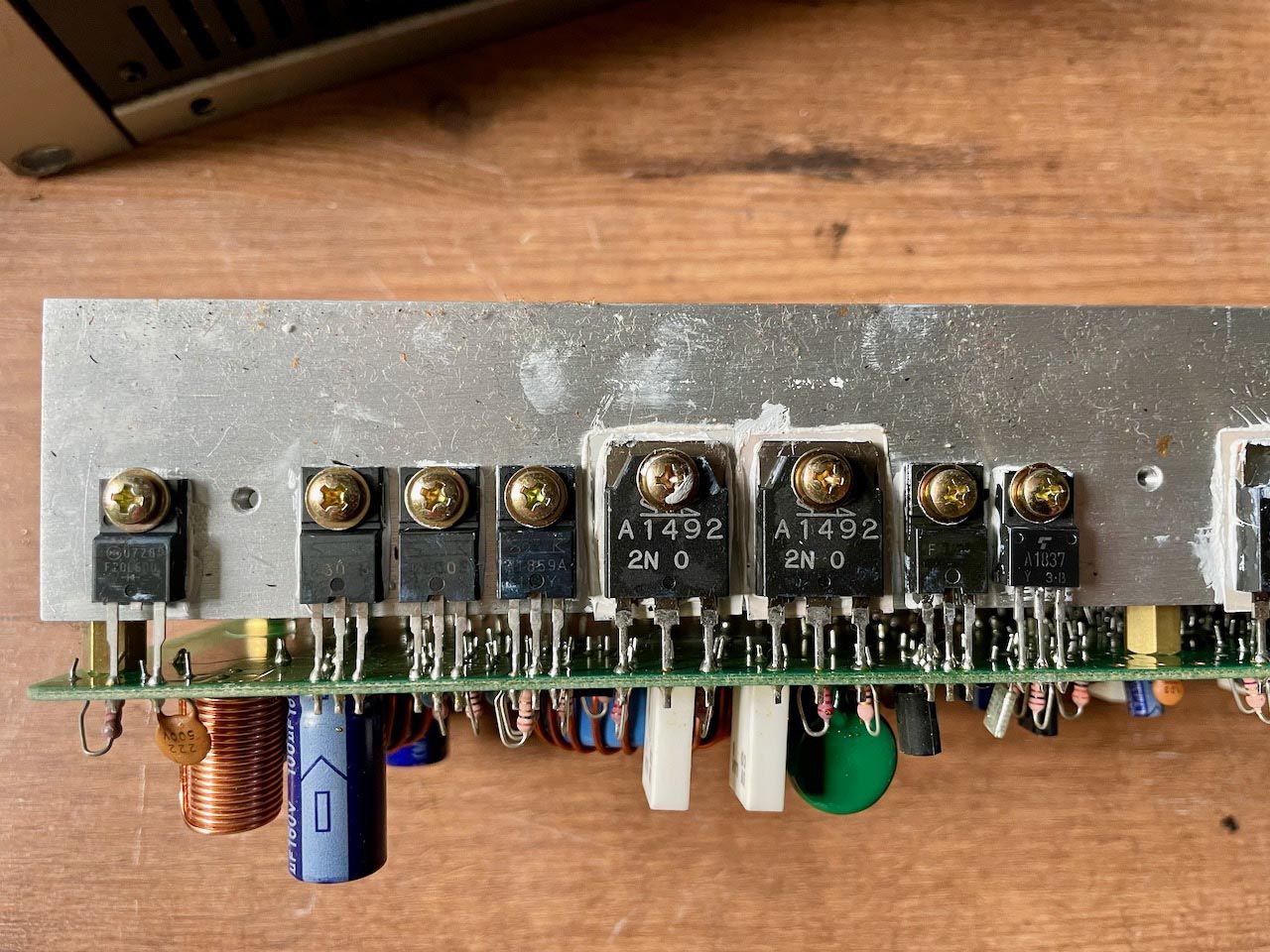 - Transistoren eruit gesoldeerd en nagemeten. Slechts één paar transistoren is defect. Betreft 2SA1492 en 2SC3856.