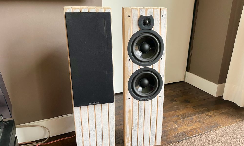 Luidsprekerboxen gemaakt met oud hout en speaker units van Cambridge Audio SX80 luidsprekers.