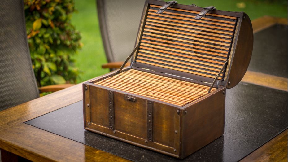 Maak van deze houten kist een 2.1 speakersysteem.